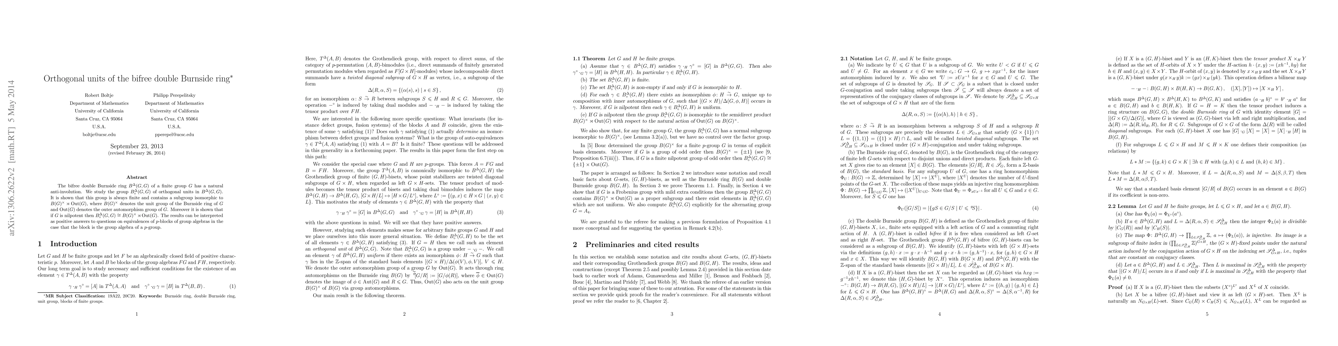 The bifree double Burnside ring $B^\Delta(G,G)$ of a finite group $G$ has a natural anti-involution. We study the group $B^\Delta_\circ(G,G)$ of orthogonal units in $B^\Delta(G,G)$. It is shown that this group is always finite and contains a subgroup isomorphic to $B(G)^\times\rtimes \Out(G)$, where $B(G)^\times$ denotes the unit group of the Burnside ring of $G$ and $\Out(G)$ denotes the outer automorphism group of $G$. Moreover it is shown that if $G$ is nilpotent then $B^\Delta_\circ(G,G)\cong B(G)^\times\rtimes \Out(G)$. The results can be interpreted as positive answers to questions on equivalences of $p$-blocks of group algebras in the case that the block is the group algebra of a $p$-group.