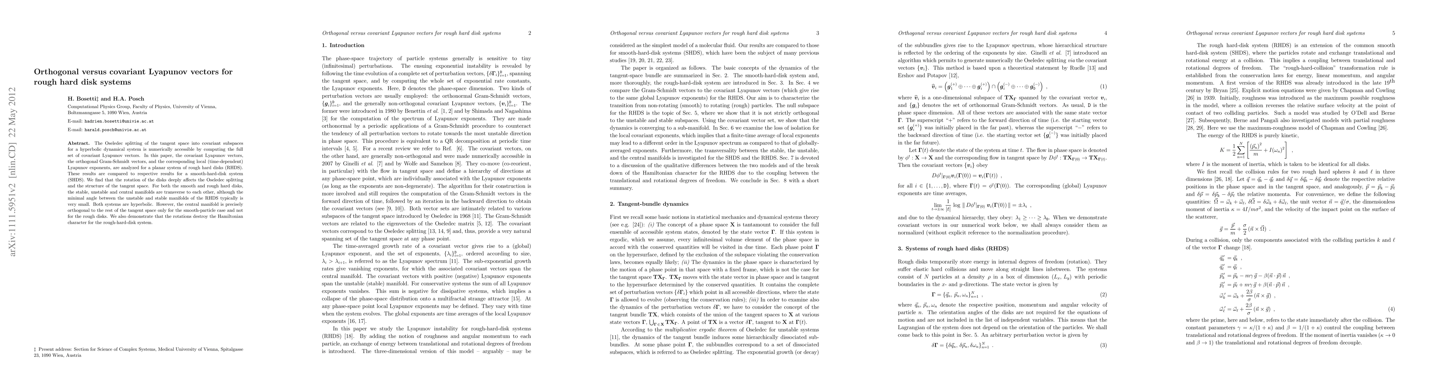 The Oseledec splitting of the tangent space into covariant subspaces for a hyperbolic dynamical system is numerically accessible by computing the full set of covariant Lyapunov vectors. In this paper, the covariant Lyapunov vectors, the orthogonal Gram-Schmidt vectors, and the corresponding local (time-dependent) Lyapunov exponents, are analyzed for a planar system of rough hard disks (RHDS). These results are compared to respective results for a smooth-hard-disk system (SHDS). We find that the rotation of the disks deeply affects the Oseledec splitting and the structure of the tangent space. For both the smooth and rough hard disks, the stable, unstable and central manifolds are transverse to each other, although the minimal angle between the unstable and stable manifolds of the RHDS typically is very small. Both systems are hyperbolic. However, the central manifold is precisely orthogonal to the rest of the tangent space only for the smooth-particle case and not for the rough disks. We also demonstrate that the rotations destroy the Hamiltonian character for the rough-hard-disk system.