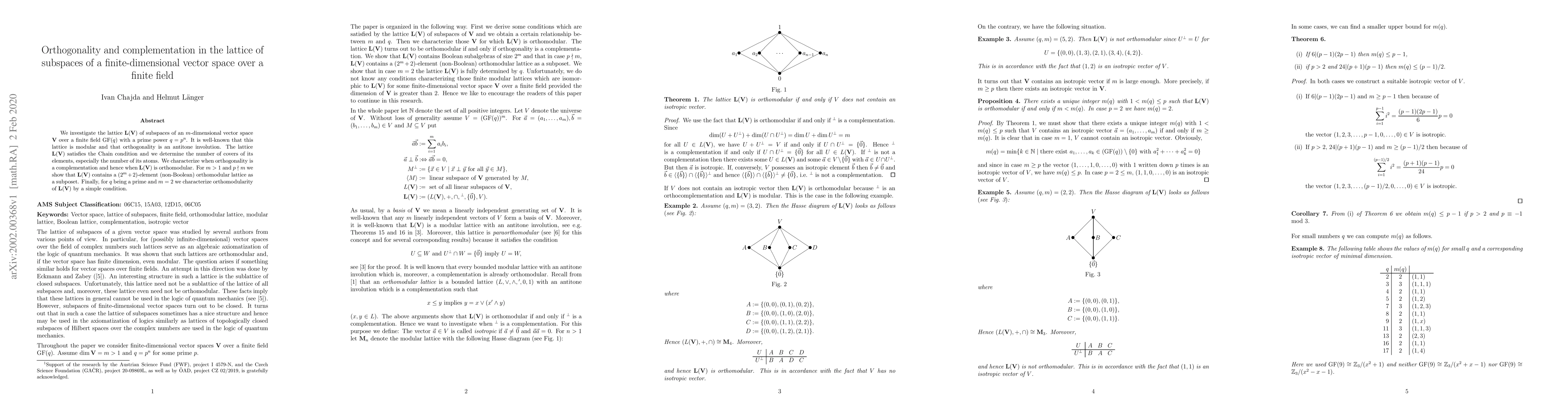 This research paper investigates lattice properties of subspaces in finite-dimensional vector spaces over finite fields, focusing on orthogonality, complementation, and orthomodularity, with key findings including the characterization of orthogonodularity for m=2 and q being a prime.