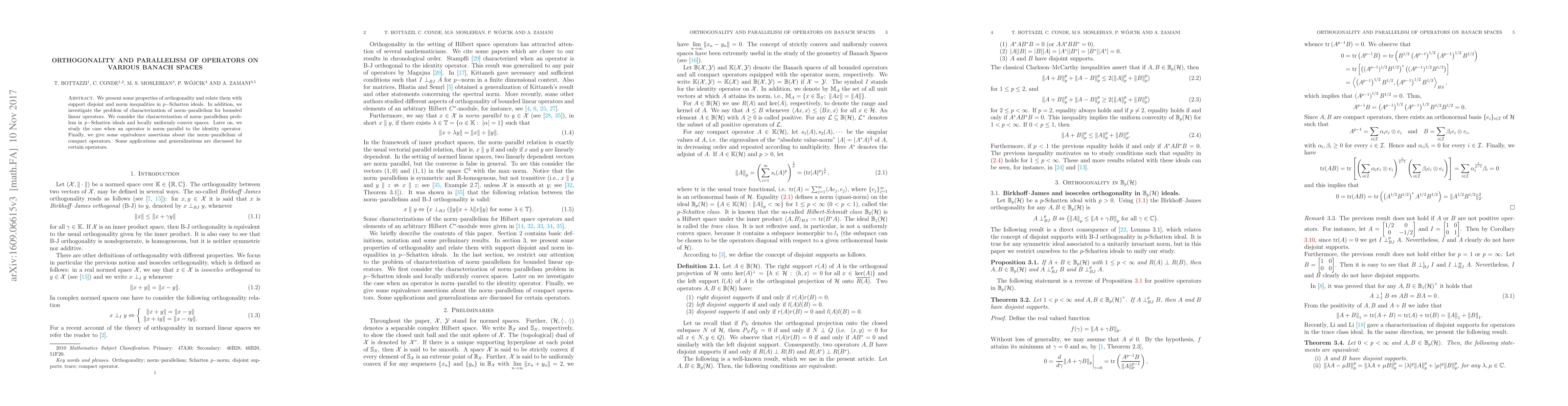 We present some properties of orthogonality and relate them with support disjoint and norm inequalities in p Schatten ideals. In addition, we investigate the problem of characterization of norm parallelism for bounded linear operators. We consider the characterization of norm parallelism problem in p Schatten ideals and locally uniformly convex spaces. Later on, we study the case when an operator is norm parallel to the identity operator. Finally, we give some equivalence assertions about the norm parallelism of compact operators. Some applications and generalizations are discussed for certain operators.