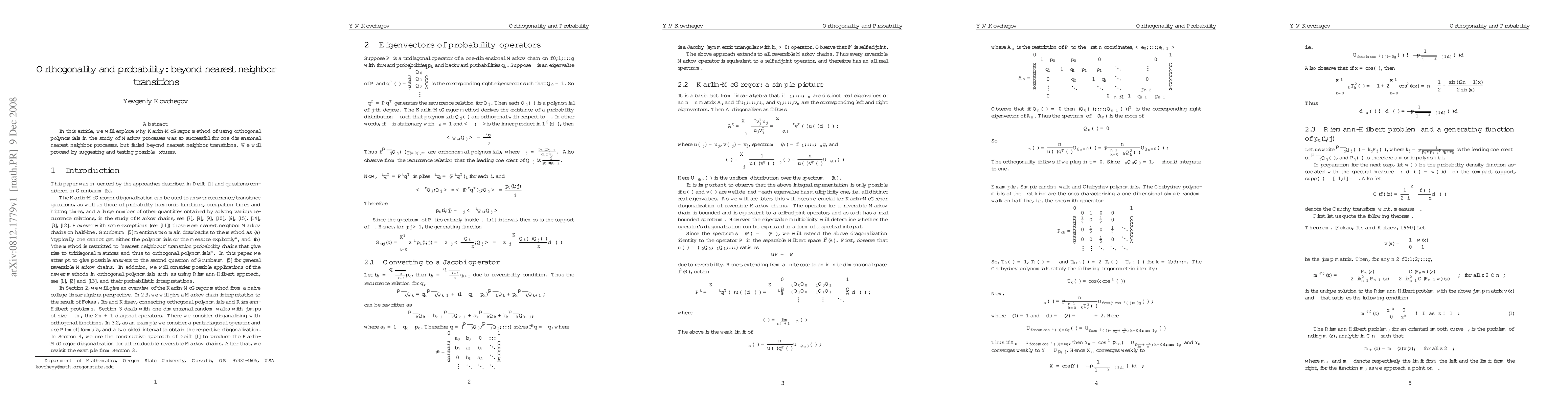 In this article, we will explore why Karlin-McGregor method of using orthogonal polynomials in the study of Markov processes was so successful for one dimensional nearest neighbor processes, but failed beyond nearest neighbor transitions. We will proceed by suggesting and testing possible fixtures.