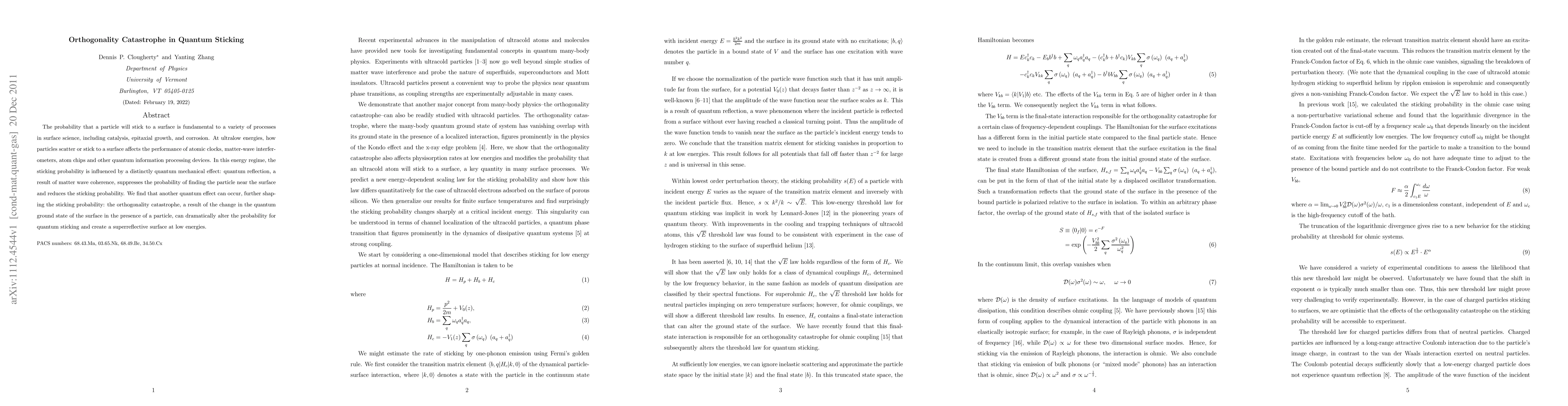 The probability that a particle will stick to a surface is fundamental to a variety of processes in surface science, including catalysis, epitaxial growth, and corrosion. At ultralow energies, how particles scatter or stick to a surface affects the performance of atomic clocks, matter-wave interferometers, atom chips and other quantum information processing devices. In this energy regime, the sticking probability is influenced by a distinctly quantum mechanical effect: quantum reflection, a result of matter wave coherence, suppresses the probability of finding the particle near the surface and reduces the sticking probability. We find that another quantum effect can occur, further shaping the sticking probability: the orthogonality catastrophe, a result of the change in the quantum ground state of the surface in the presence of a particle, can dramatically alter the probability for quantum sticking and create a superreflective surface at low energies.