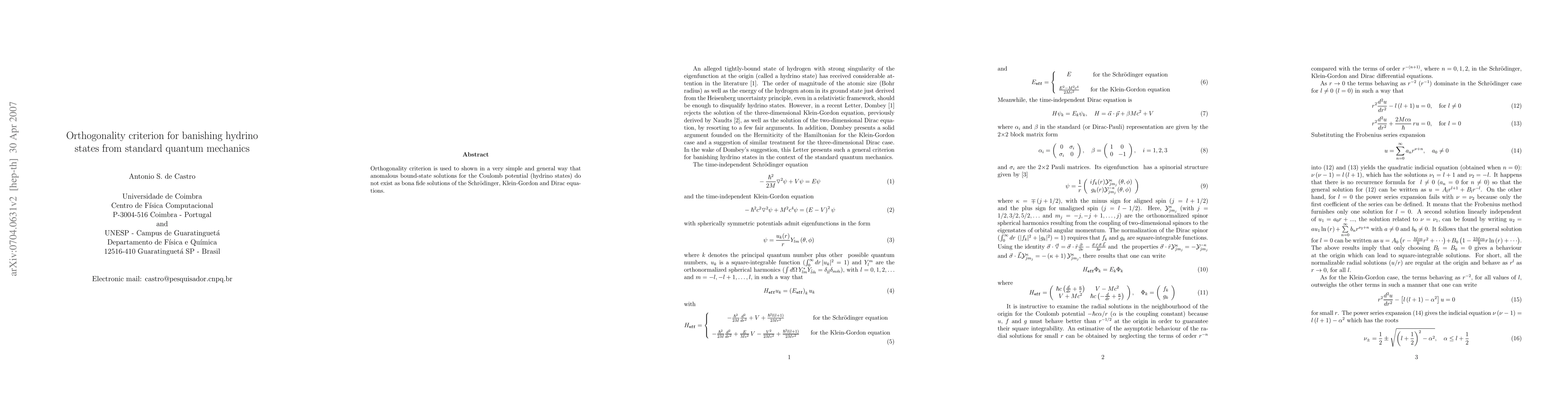 Orthogonality criterion is used to shown in a very simple and general way that anomalous bound-state solutions for the Coulomb potential (hydrino states) do not exist as bona fide solutions of the Schr\"{o}dinger, Klein-Gordon and Dirac equations.
