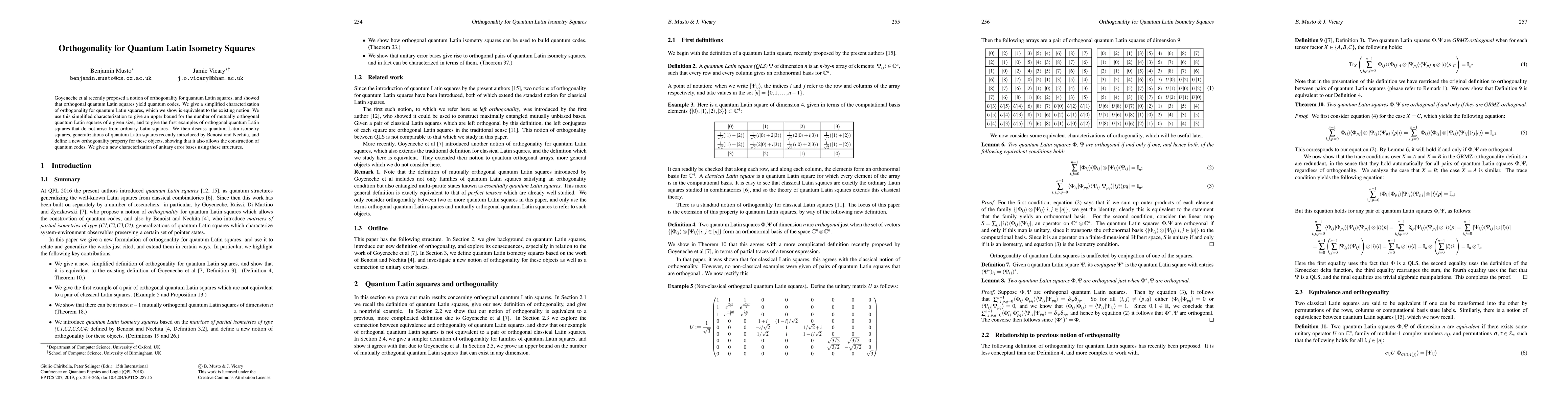 Goyeneche et al recently proposed a notion of orthogonality for quantum Latin squares, and showed that orthogonal quantum Latin squares yield quantum codes. We give a simplified characterization of orthogonality for quantum Latin squares, which we show is equivalent to the existing notion. We use this simplified characterization to give an upper bound for the number of mutually orthogonal quantum Latin squares of a given size, and to give the first examples of orthogonal quantum Latin squares that do not arise from ordinary Latin squares. We then discuss quantum Latin isometry squares, generalizations of quantum Latin squares recently introduced by Benoist and Nechita, and define a new orthogonality property for these objects, showing that it also allows the construction of quantum codes. We give a new characterization of unitary error bases using these structures.