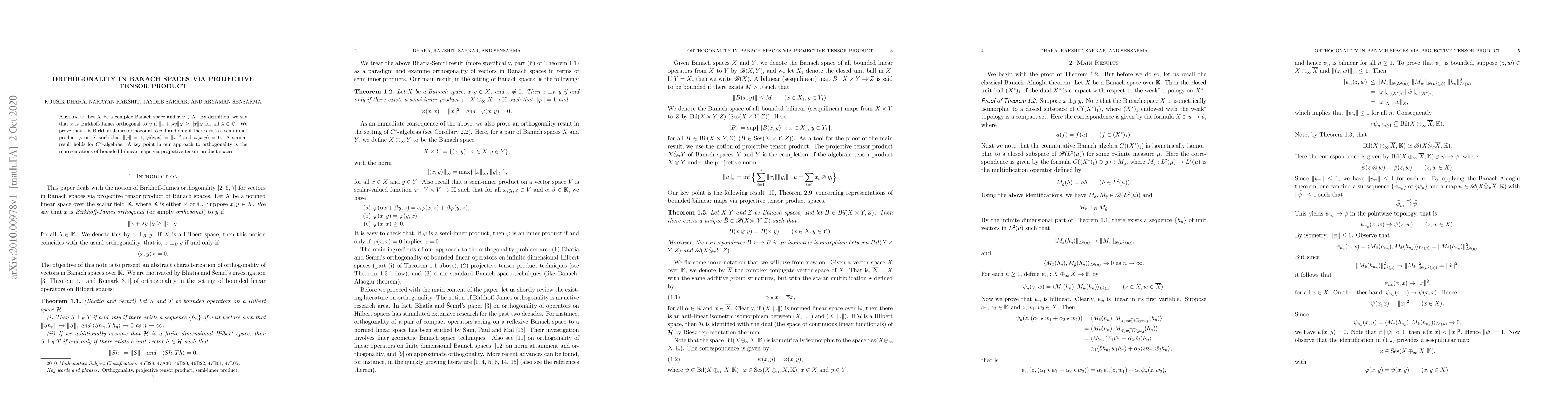 This paper establishes a connection between Birkhoff-James orthogonality in Banach spaces and semi-inner products, proving that $x$ is orthogonal to $y$ if there exists a semi-inner product $\varphi$ satisfying specific conditions. The study leverages projective tensor products to represent bounded bilinear maps and extends the result to $C^*$-algebras.