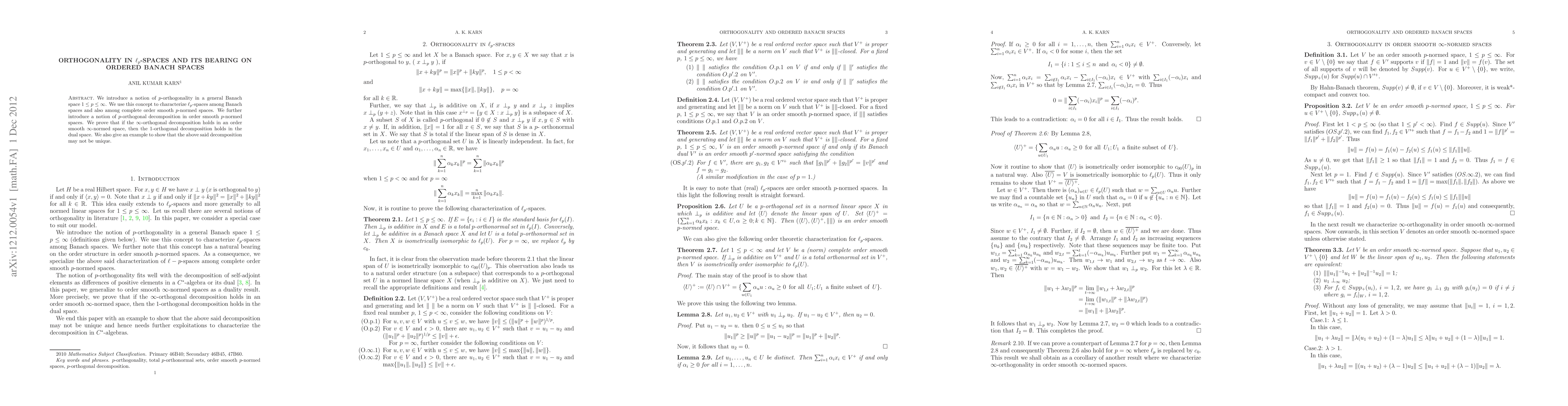 This paper introduces p-orthogonality in Banach spaces to characterize $\ell_p$-spaces and explores $p$-orthogonal decompositions in order smooth p-normed spaces, proving that $\infty$-orthogonal decompositions in order smooth $\infty$-normed spaces imply 1-orthogonal decompositions in their duals, while noting the potential non-uniqueness of such decompositions.