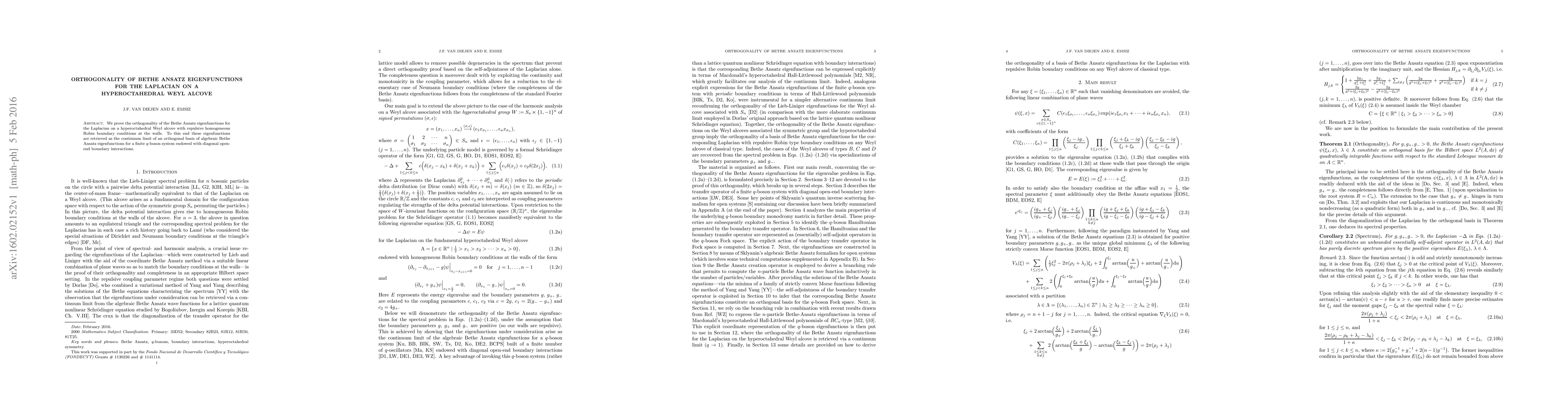 Summary: This paper proves the orthogonality of Bethe Ansatz eigenfunctions for the Laplacian on a hyperoctahedral Weyl alcove under repulsive homogeneous Robin boundary conditions, showing their derivation as the continuum limit of algebraic Bethe Ansatz eigenfunctions from a finite $q$-boson system with diagonal open-end interactions.