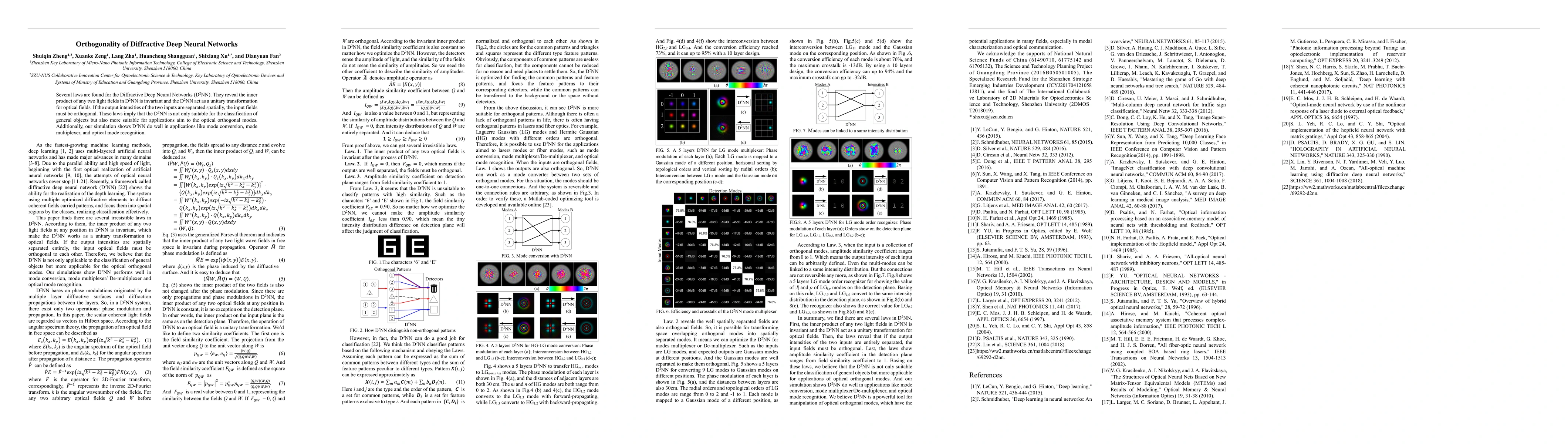 Several laws are found for the Diffractive Deep Neural Networks (D2NN). They reveal the inner product of any two light fields in D2NN is invariant and the D2NN act as a unitary transformation for optical fields. If the output intensities of the two inputs are separated spatially, the input fields must be orthogonal. These laws imply that the D2NN is not only suitable for the classification of general objects but also more suitable for applications aim to the optical orthogonal modes. Additionally, our simulation shows D2NN do well in applications like mode conversion, mode multiplexer, and optical mode recognition.