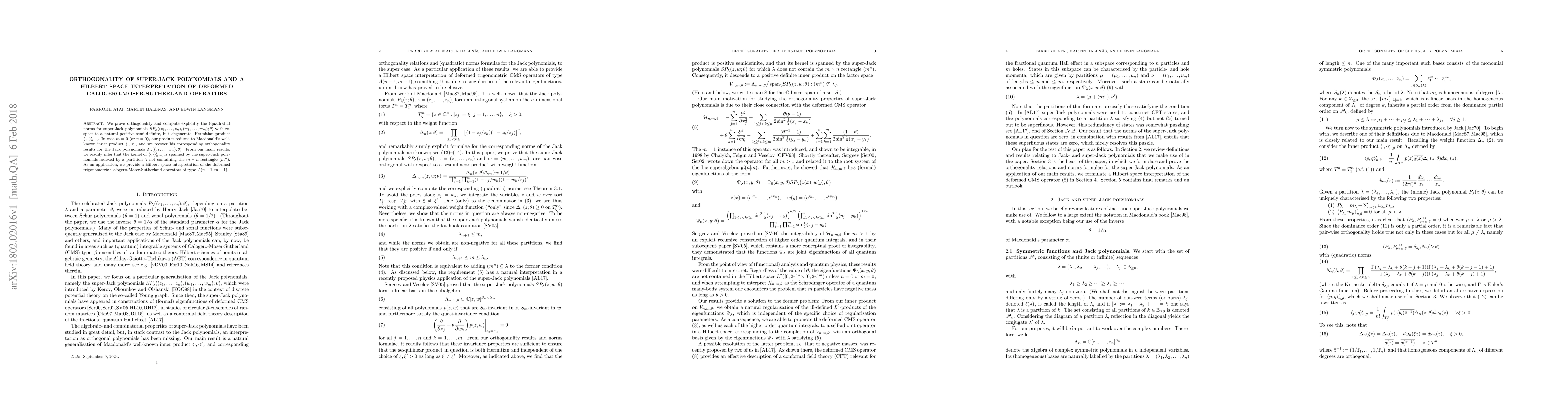 This paper proves orthogonality and computes norms for super-Jack polynomials under a specific degenerate Hermitian product, extending Macdonald's results for Jack polynomials. It also provides a Hilbert space interpretation for deformed Calogero-Moser-Sutherland operators.