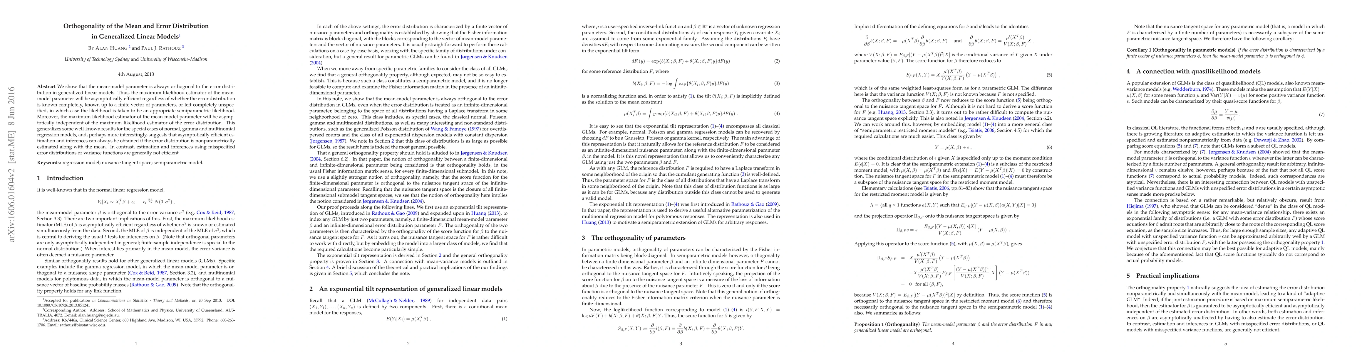 This research has implications for statistical inference in generalized linear models, particularly when the error distribution is unknown or misspecified.