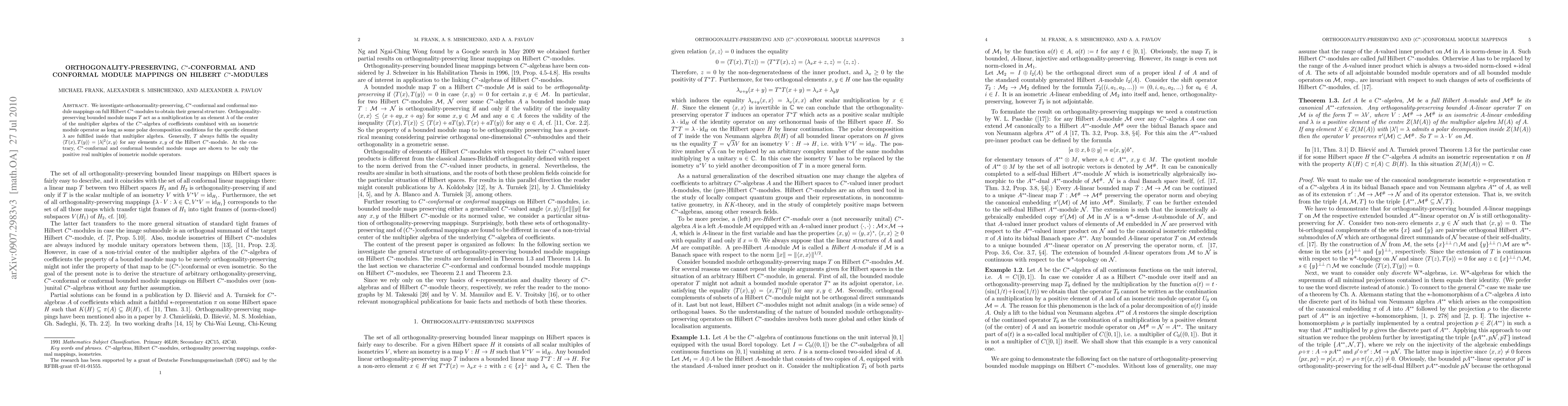 We investigate orthonormality-preserving, C*-conformal and conformal module