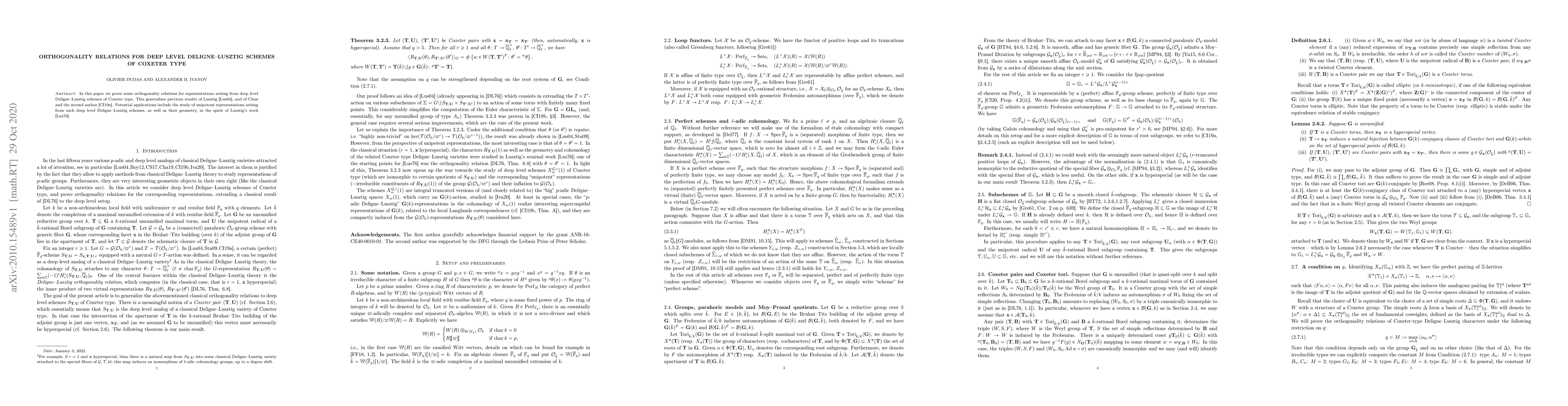 This paper proves orthogonality relations for representations from deep level Deligne-Lusztig schemes of Coxeter type, extending previous work by Lusztig and Chan. Potential applications lie in studying unipotent representations and their geometry.