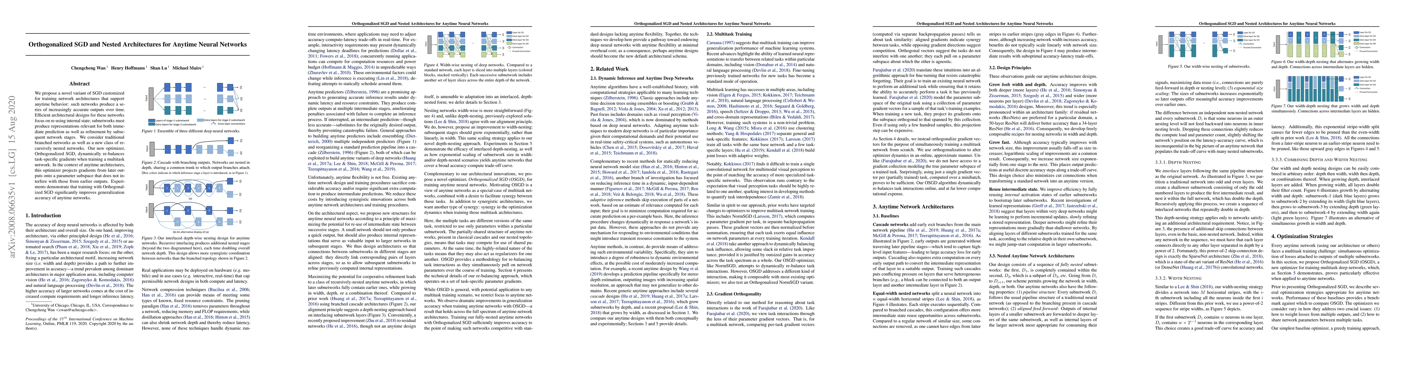 We propose a novel variant of SGD customized for training network architectures that support anytime behavior: such networks produce a series of increasingly accurate outputs over time. Efficient architectural designs for these networks focus on re-using internal state; subnetworks must produce representations relevant for both immediate prediction as well as refinement by subsequent network stages. We consider traditional branched networks as well as a new class of recursively nested networks. Our new optimizer, Orthogonalized SGD, dynamically re-balances task-specific gradients when training a multitask network. In the context of anytime architectures, this optimizer projects gradients from later outputs onto a parameter subspace that does not interfere with those from earlier outputs. Experiments demonstrate that training with Orthogonalized SGD significantly improves generalization accuracy of anytime networks.