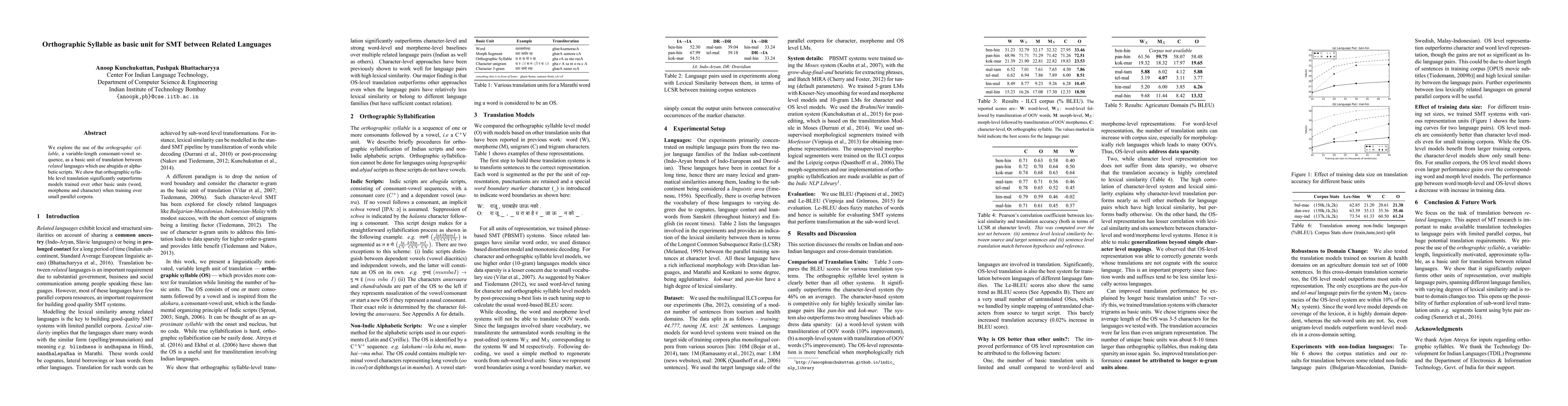 This research uses a novel approach to machine translation by incorporating orthographic syllabification of Indian scripts into the translation process.