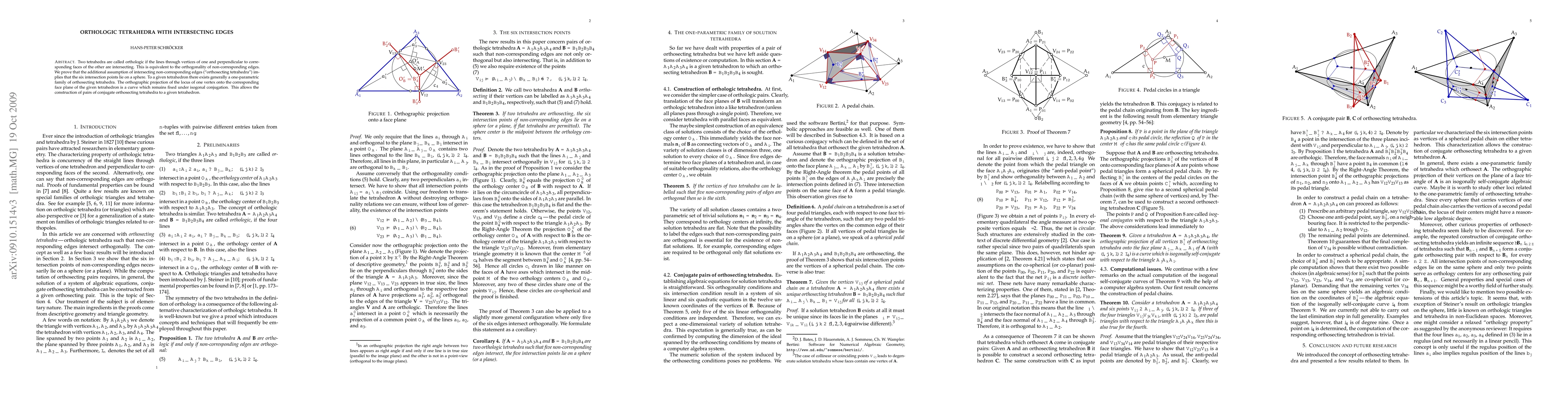The paper presents a detailed proof that orthologic and orthosecting tetrahedra have intersection points lying on a sphere, along with methods for constructing conjugate orthosecting tetrahedra.