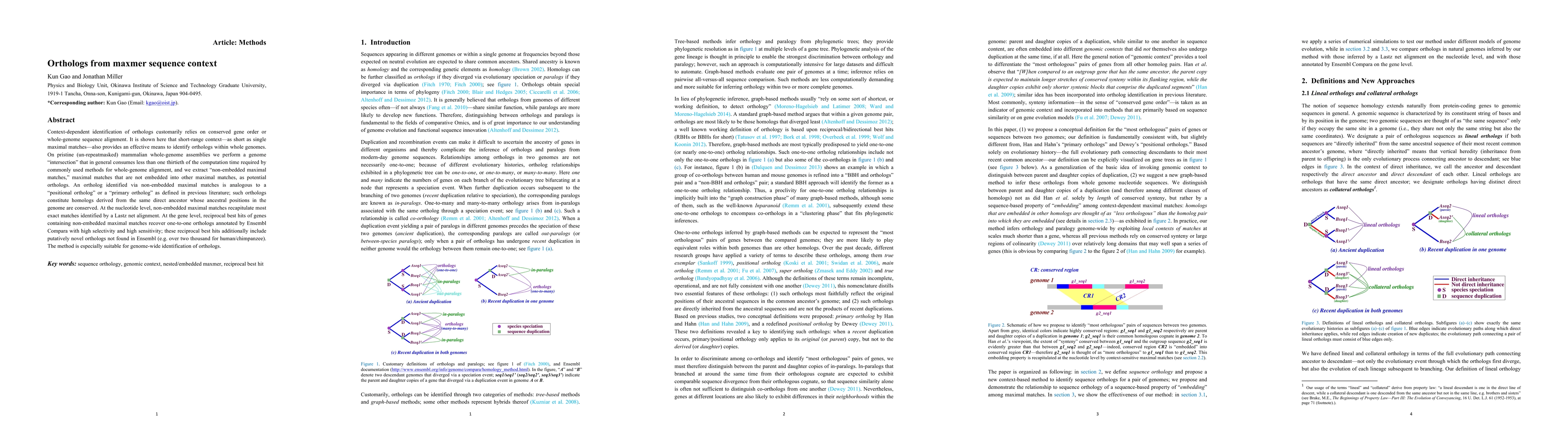 A new method identifies orthologs using short-range context, requiring less computational time than traditional methods, and recovers high sensitivity and selectivity at both the nucleotide and gene levels.