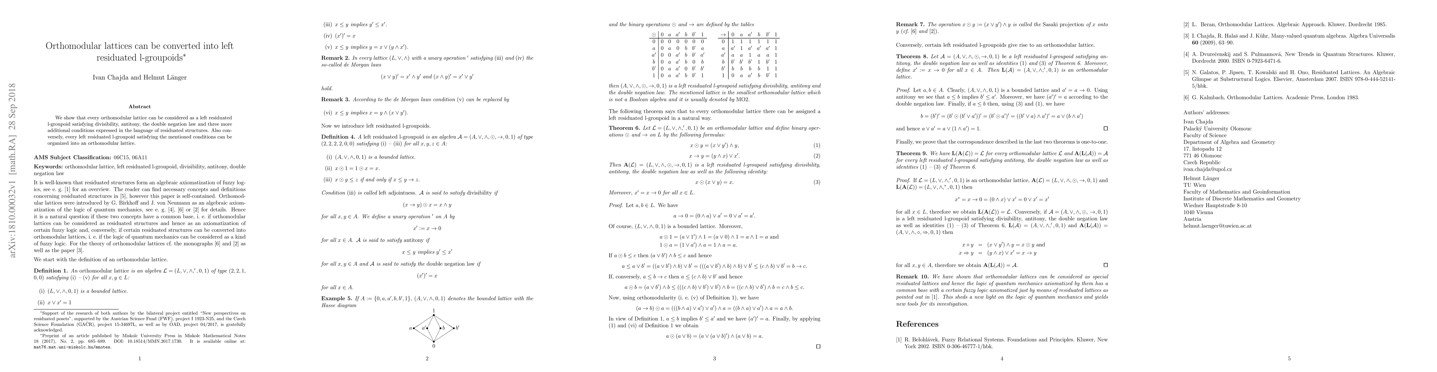 Researchers have found that orthomodular lattices can be converted into left residuated l-groupoids and vice versa, showing a connection between two mathematical structures.
