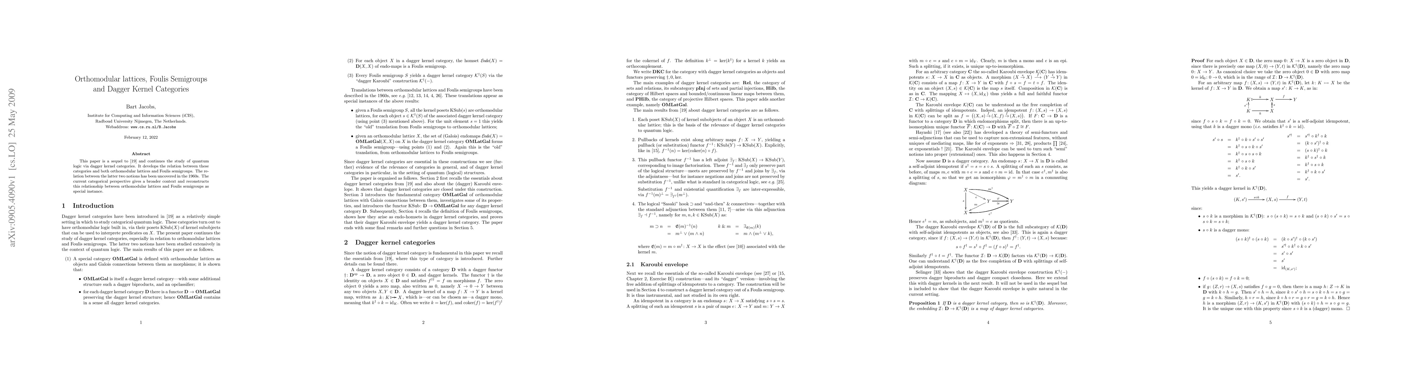 This paper explores the connection between dagger kernel categories, orthomodular lattices, and Foulis semigroups, providing a new categorical perspective that reconstructs the historical relationship between the latter two concepts.
