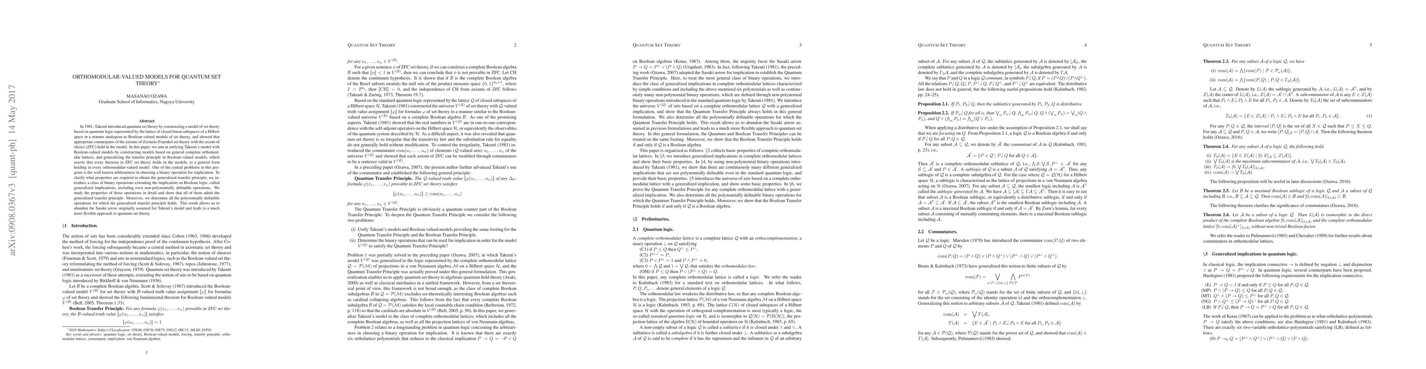 In 1981, Takeuti introduced quantum set theory by constructing a model of set theory based on quantum logic represented by the lattice of closed linear subspaces of a Hilbert space in a manner analogous to Boolean-valued models of set theory, and showed that appropriate counterparts of the axioms of Zermelo-Fraenkel set theory with the axiom of choice (ZFC) hold in the model. In this paper, we aim at unifying Takeuti's model with Boolean-valued models by constructing models based on general complete orthomodular lattices, and generalizing the transfer principle in Boolean-valued models, which asserts that every theorem in ZFC set theory holds in the models, to a general form holding in every orthomodular-valued model. One of the central problems in this program is the well-known arbitrariness in choosing a binary operation for implication. To clarify what properties are required to obtain the generalized transfer principle, we introduce a class of binary operations extending the implication on Boolean logic, called generalized implications, including even non-polynomially definable operations. We study the properties of those operations in detail and show that all of them admit the generalized transfer principle. Moreover, we determine all the polynomially definable operations for which the generalized transfer principle holds. This result allows us to abandon the Sasaki arrow originally assumed for Takeuti's model and leads to a much more flexible approach to quantum set theory.