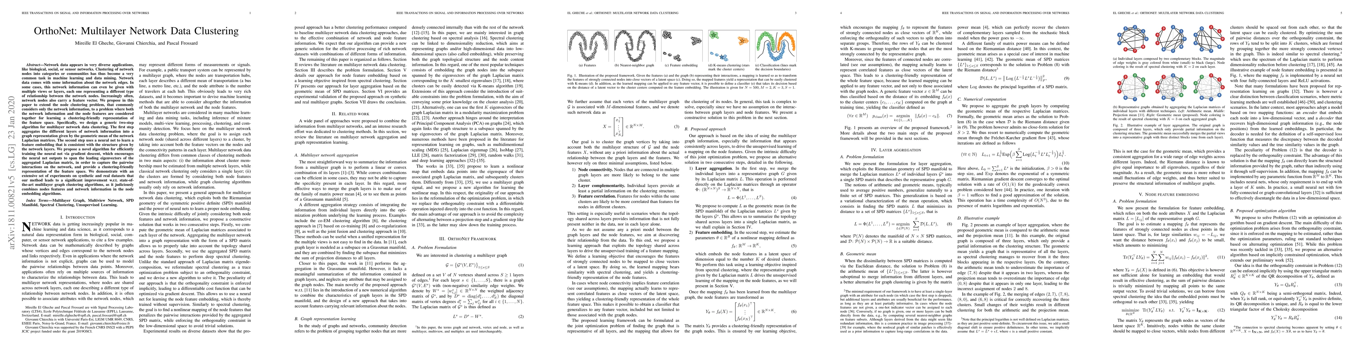 OrthoNet proposes a two-step algorithm for clustering nodes in multilayer network data, integrating both network information and node features. The method aggregates network layers into a graph representation and uses a neural net to learn a feature embedding consistent with the network structure, significantly improving clustering performance over state-of-the-art methods.