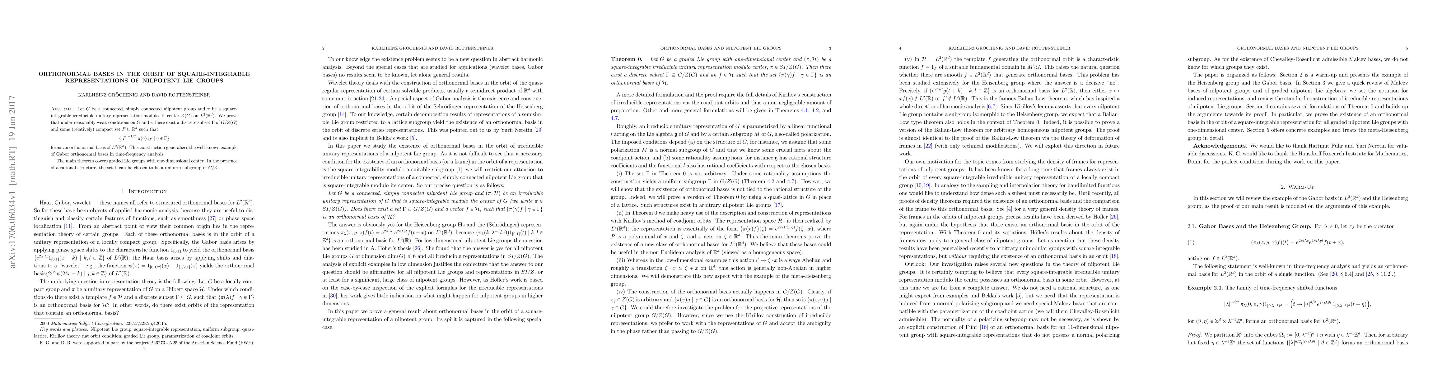 The paper introduces a novel method for constructing orthonormal bases in the orbit of square-integrable representations of nilpotent Lie groups, generalizing the concept of Gabor bases.