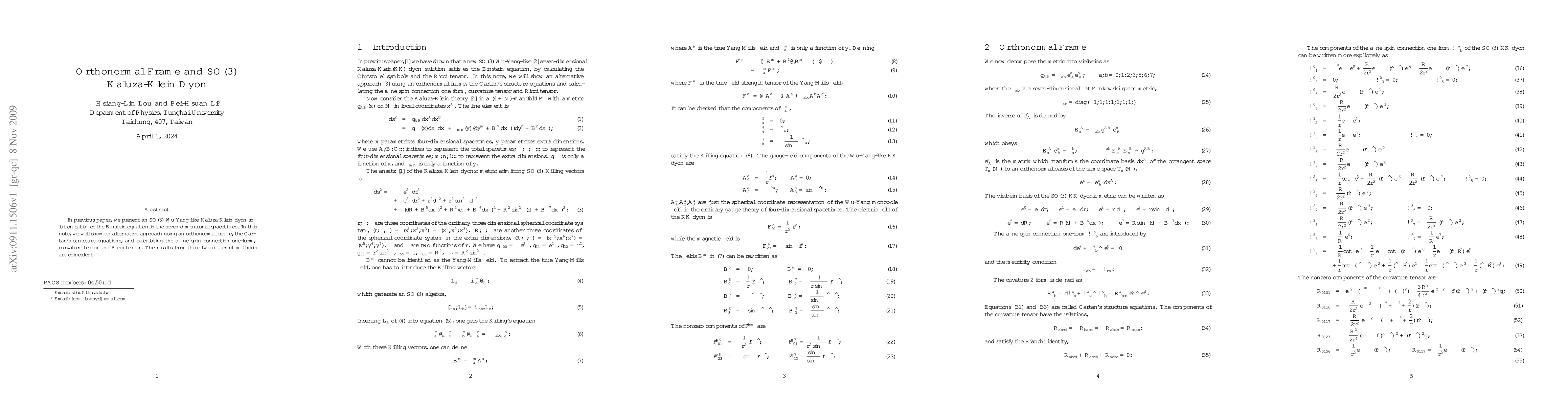 In previous paper, we present an SO(3) Wu-Yang-like Kaluza-Klein dyon so- lution satisfies the Einstein equation in the seven-dimensional spacetimes. In this note, we will show an alternative approach using an orthonormal frame, the Cartan's structure equations, and calculating the affine spin connection one-form,curvature tensor and Ricci tensor. The results from these two different methods are coincident.