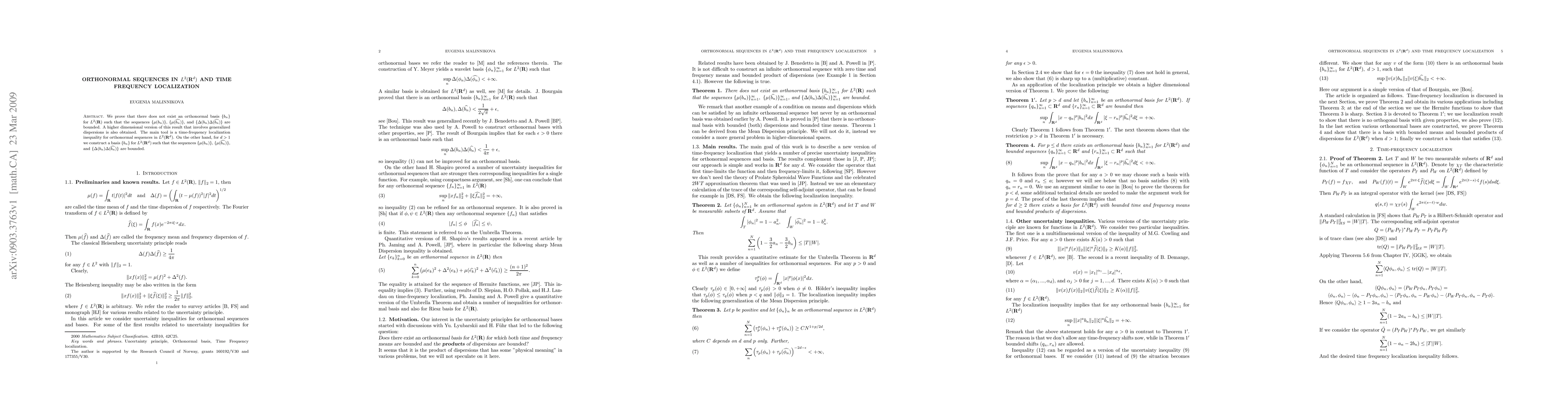 The work extends classical uncertainty principles to orthonormal sequences in higher-dimensional spaces, offering new insights into the behavior of time-frequency means and dispersion products.