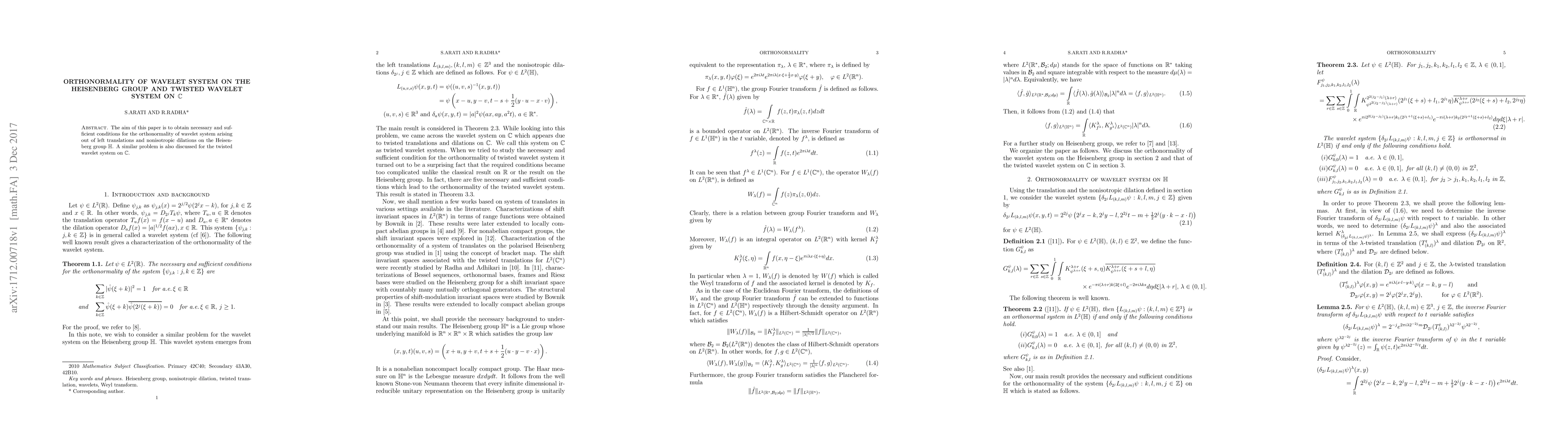 The aim of this paper is to obtain necessary and sufficient conditions for the orthonormality of wavelet system arising out of left translations and nonisotropic dilations on the Heisenberg group $\mathbb{H}$. A similar problem is also discussed for the twisted wavelet system on $\mathbb{C}$.