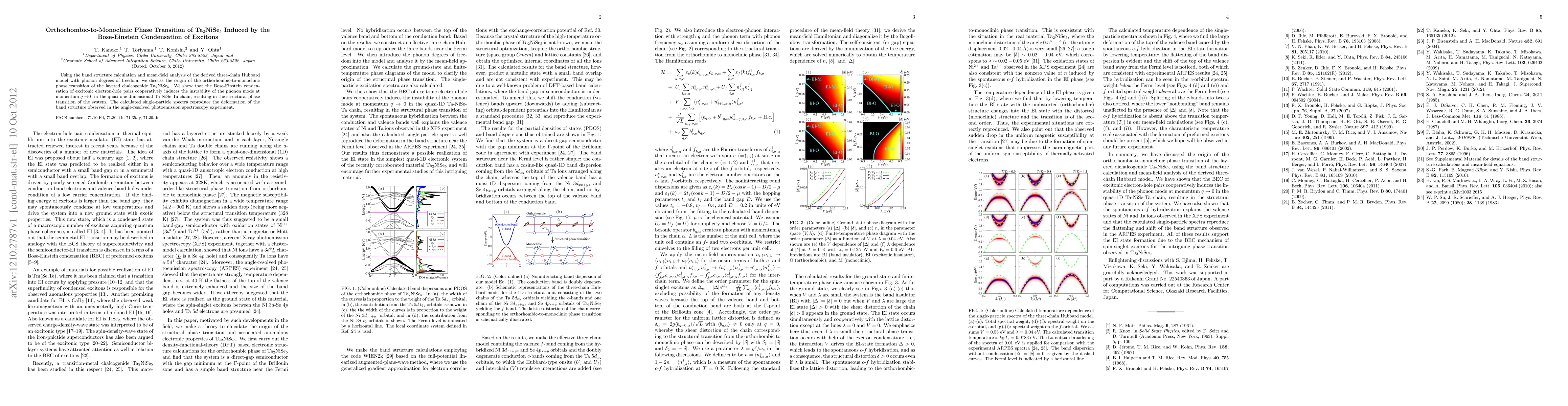 Using the band structure calculation and mean-field analysis of the derived three-chain Hubbard model with phonon degrees of freedom, we discuss the origin of the orthorhombic-to-monoclinic phase transition of the layered chalcogenide Ta$_2$NiSe$_5$. We show that the Bose-Einstein condensation of excitonic electron-hole pairs cooperatively induces the instability of the phonon mode at momentum $q\rightarrow 0$ in the quasi-one-dimensional Ta-NiSe-Ta chain, resulting in the structural phase transition of the system. The calculated single-particle spectra reproduce the deformation of the band structure observed in the angle-resolved photoemission spectroscopy experiment.