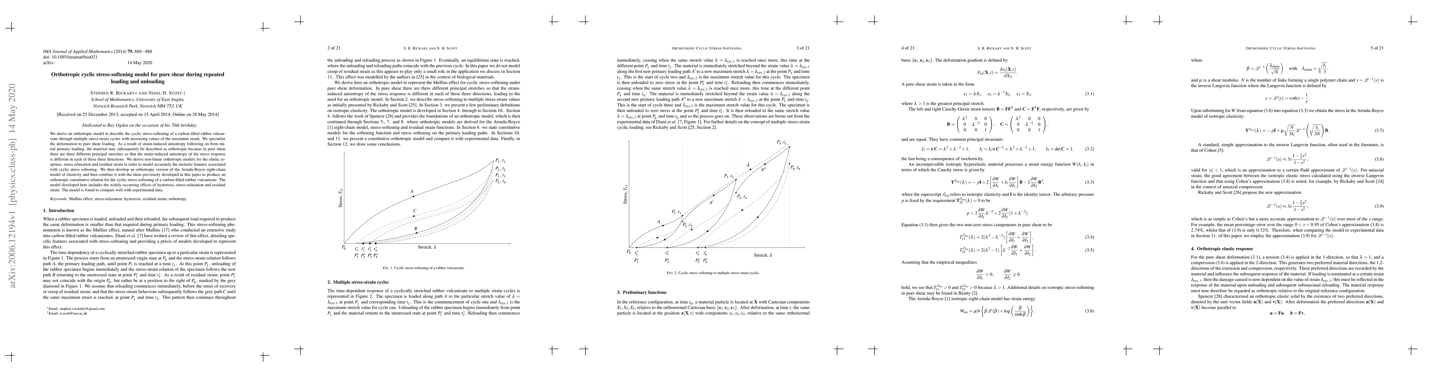 This paper develops an orthotropic cyclic stress-softening model for carbon-filled rubber vulcanizate under repeated pure shear loading, incorporating effects like hysteresis, stress-relaxation, and residual strain, and shows good agreement with experimental data. The model extends the Arruda-Boyce eight-chain model to orthotropic behavior, capturing strain-induced anisotropy.