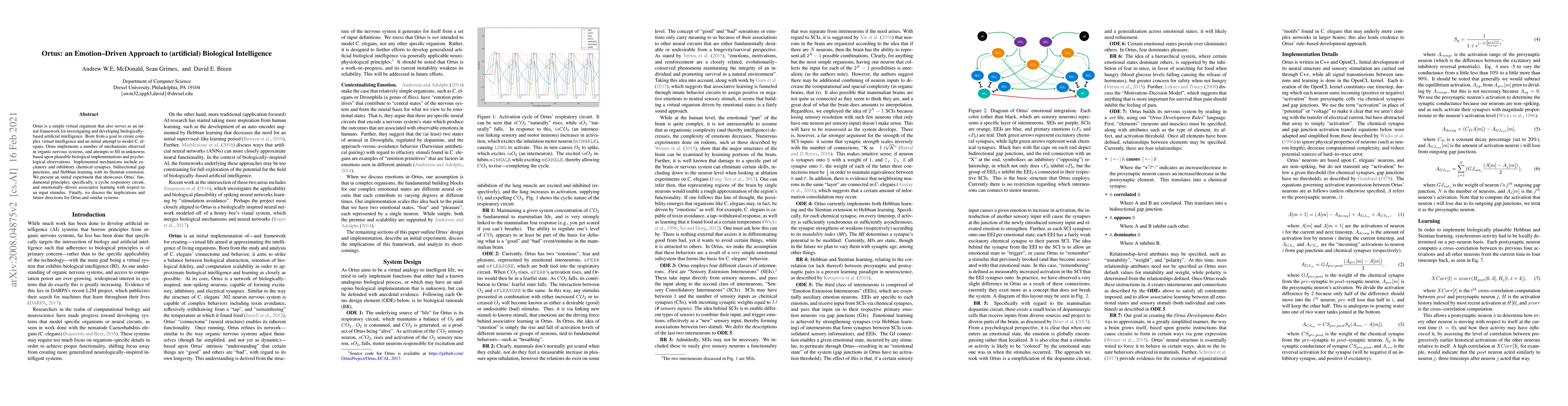 Ortus is a simple virtual organism that also serves as an initial framework for investigating and developing biologically-based artificial intelligence. Born from a goal to create complex virtual intelligence and an initial attempt to model C. elegans, Ortus implements a number of mechanisms observed in organic nervous systems, and attempts to fill in unknowns based upon plausible biological implementations and psychological observations. Implemented mechanisms include excitatory and inhibitory chemical synapses, bidirectional gap junctions, and Hebbian learning with its Stentian extension. We present an initial experiment that showcases Ortus' fundamental principles; specifically, a cyclic respiratory circuit, and emotionally-driven associative learning with respect to an input stimulus. Finally, we discuss the implications and future directions for Ortus and similar systems.