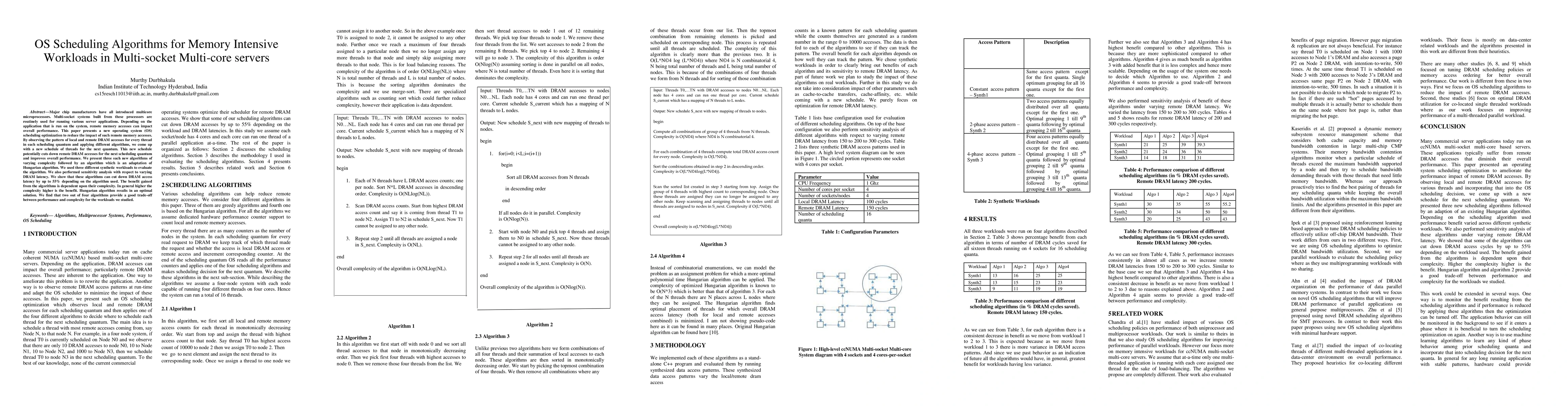 This paper proposes new OS scheduling algorithms to minimize remote memory accesses in multi-socket multi-core servers, improving performance. The algorithms reduce DRAM access latency by up to 55% and provide a trade-off between performance and complexity, with the Hungarian algorithm yielding optimal results.