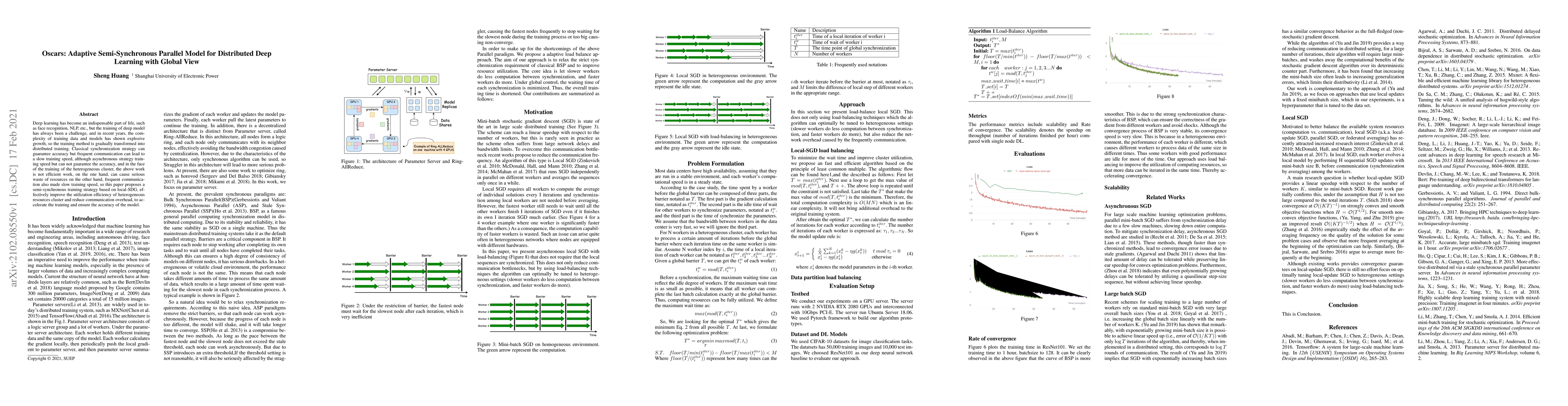 This paper proposes an adaptive semi-synchronous parallel model, named Oscars, for distributed deep learning that balances training speed and accuracy. The method leverages local SGD to improve resource utilization in heterogeneous clusters while minimizing communication overhead.