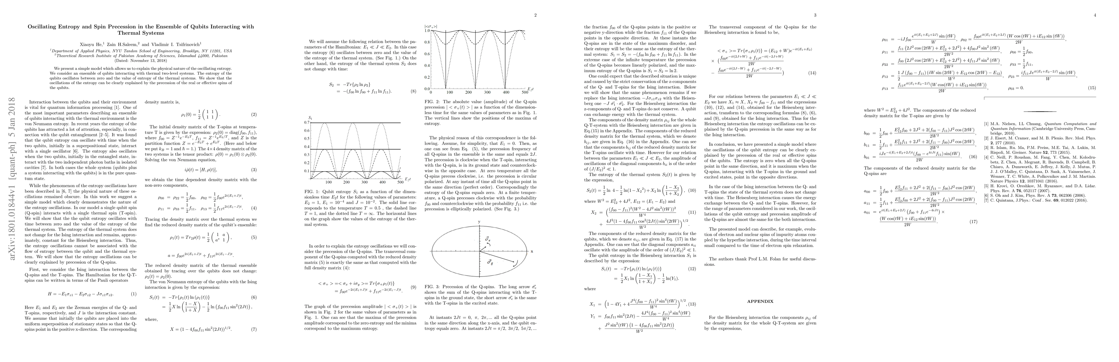 We present a simple model which allows us to explain the physical nature of the oscillating entropy. We consider an ensemble of qubits interacting with thermal two-level systems. The entropy of the qubits oscillates between zero and the value of entropy of the thermal systems. We show that the oscillations of the entropy can be clearly explained by the precession of the real or effective spins of the qubits.