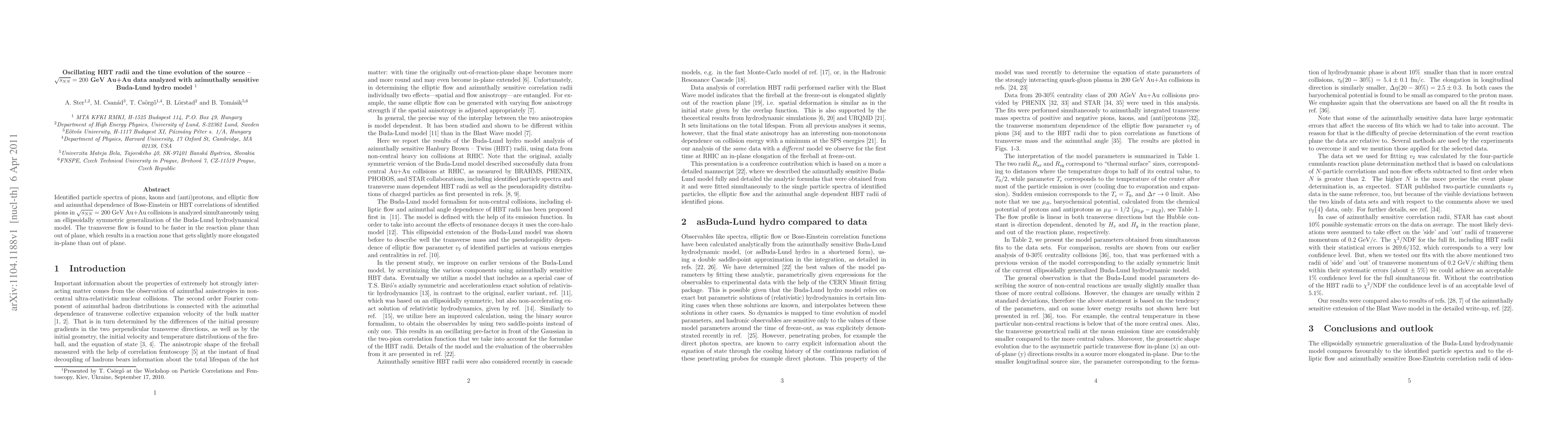 This study analyzes identified particle spectra and HBT radii in 200 GeV Au+Au collisions using an azimuthally sensitive Buda-Lund hydro model, finding that transverse flow is faster in the reaction plane, leading to a slightly more elongated reaction zone in-plane.