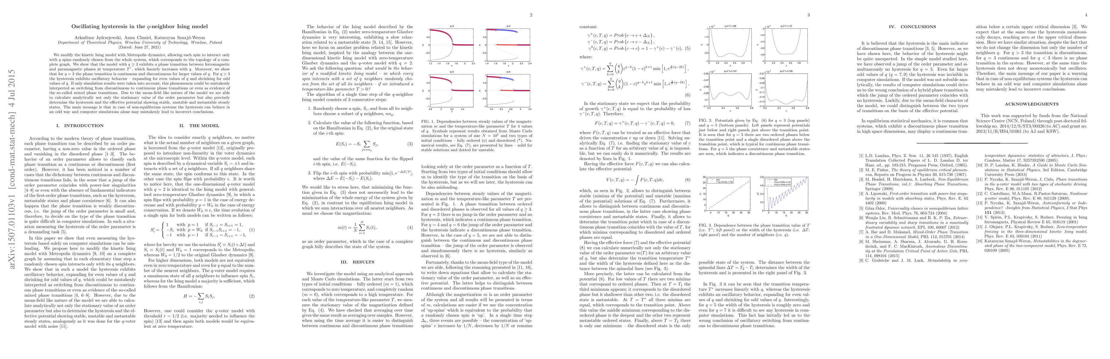 This paper investigates the q-neighbor Ising model with Metropolis dynamics, revealing oscillatory hysteresis behavior for $q>3$ and cautioning that simulations alone may misinterpret phase transitions as mixed or continuous/discontinuous. Analytical calculations complement simulations, highlighting the non-equilibrium system's unique hysteresis dynamics.