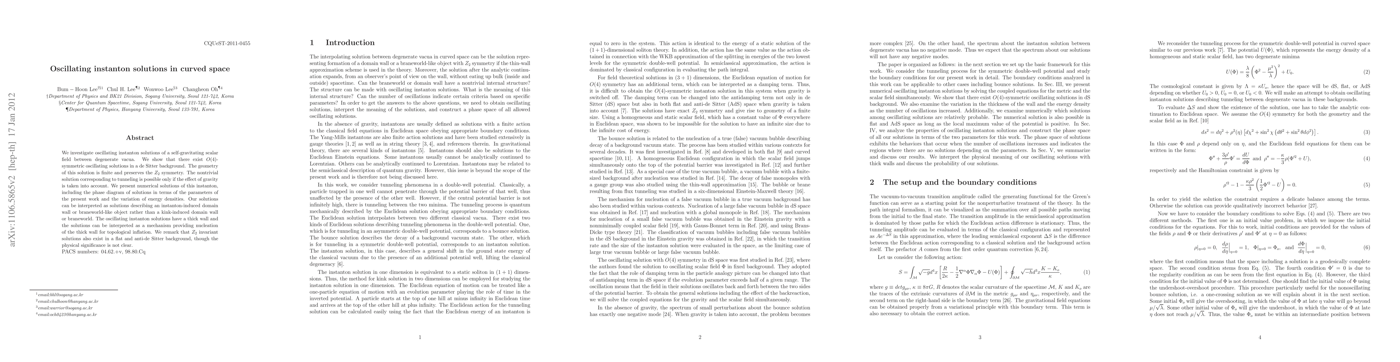 The paper presents numerical solutions for oscillating instanton configurations in curved space, demonstrating the existence of finite-geometry solutions with Z2 symmetry in de Sitter, flat, and anti-de Sitter backgrounds.