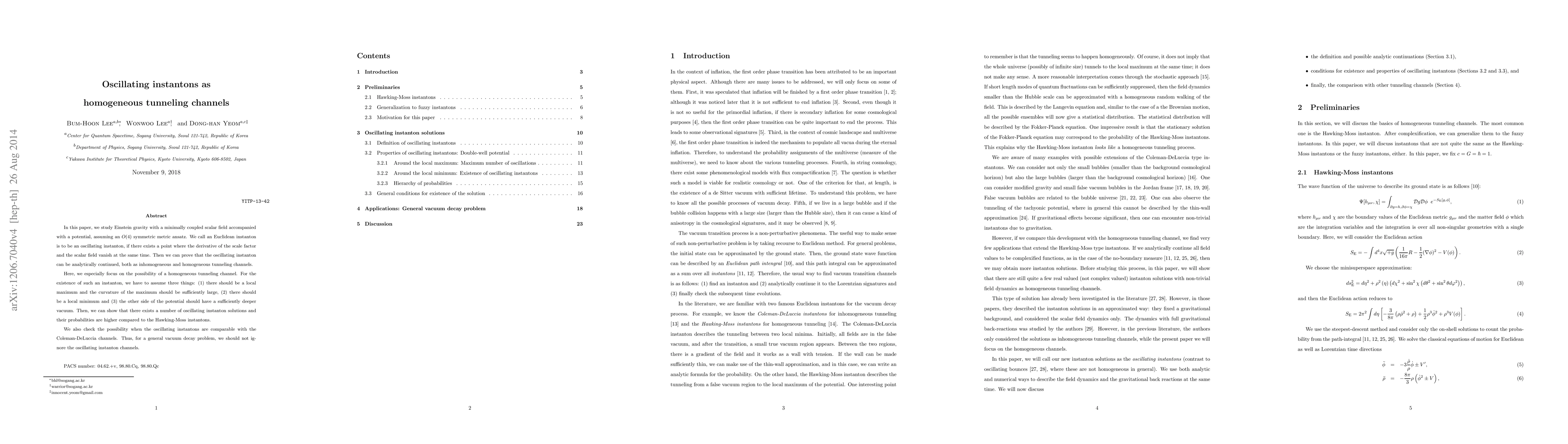 The novelty of this work lies in the identification and characterization of oscillating instantons as homogeneous tunneling channels, offering a new perspective on vacuum decay processes in quantum gravity.