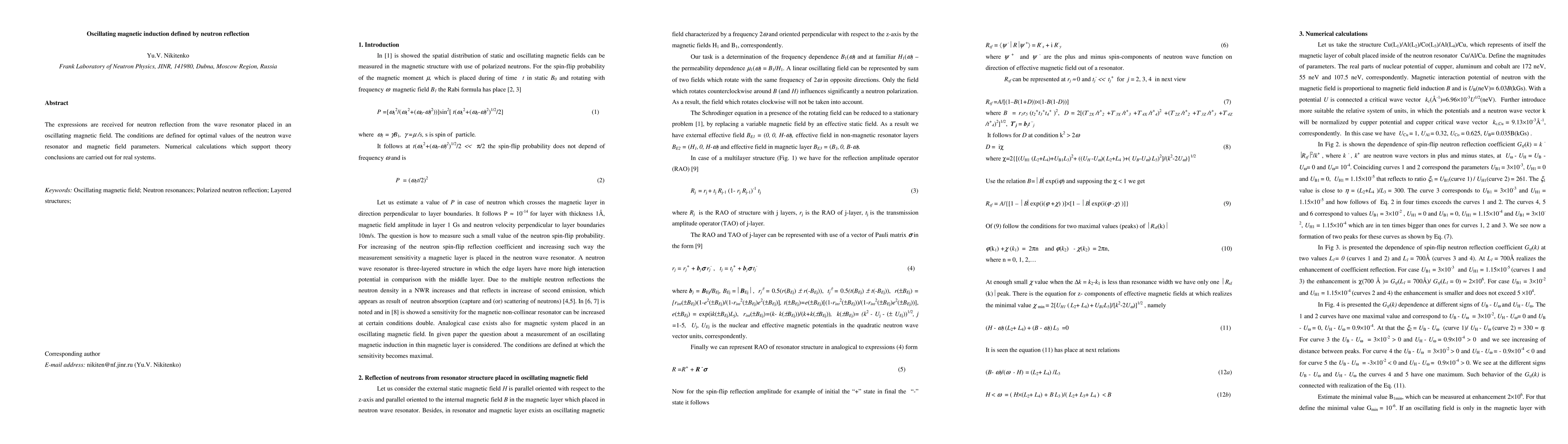 This paper derives expressions for neutron reflection from a wave resonator in an oscillating magnetic field and identifies optimal parameters for neutron and magnetic field conditions. Numerical calculations validate the theoretical conclusions for practical systems.