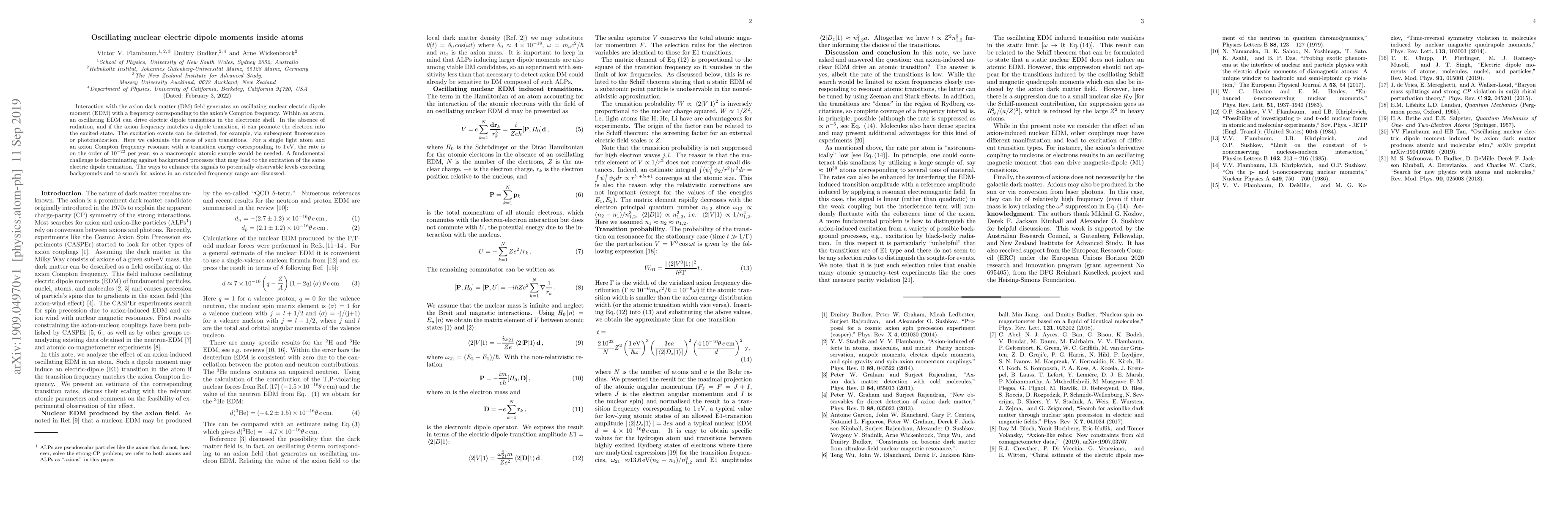 This paper investigates the interaction of axion dark matter with atomic nuclei, generating an oscillating electric dipole moment that can drive electronic transitions within atoms. The study calculates the rates of these transitions and discusses the challenges of detecting such events, emphasizing the need for macroscopic samples and strategies to overcome background interference.