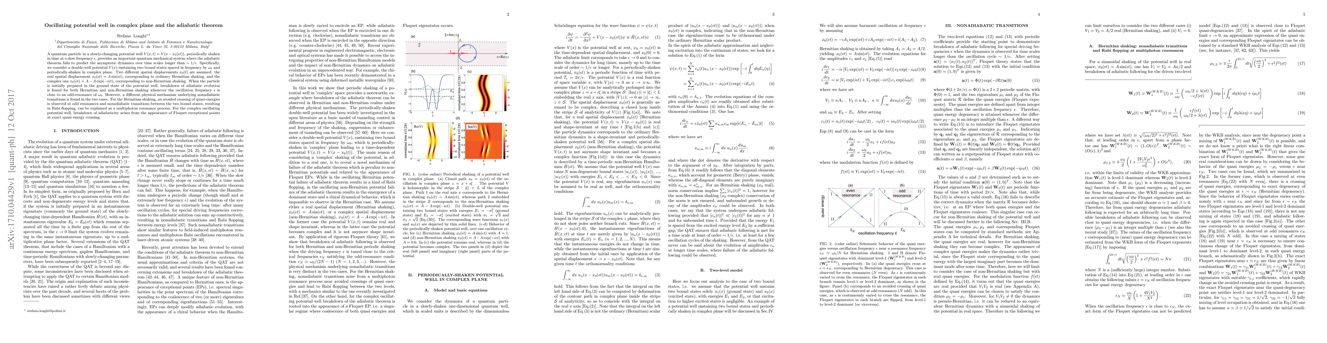 This paper investigates a quantum particle in a periodically-shaken potential well, demonstrating that the adiabatic theorem fails to predict dynamics when the shaking frequency is near an odd-resonance of the bound state frequency. Both Hermitian and non-Hermitian shaking lead to nonadiabatic transitions, with different underlying mechanisms: Hermitian shaking causes Rabi flopping via multiphoton resonance, while non-Hermitian shaking involves Floquet exceptional points at quasi-energy crossings.