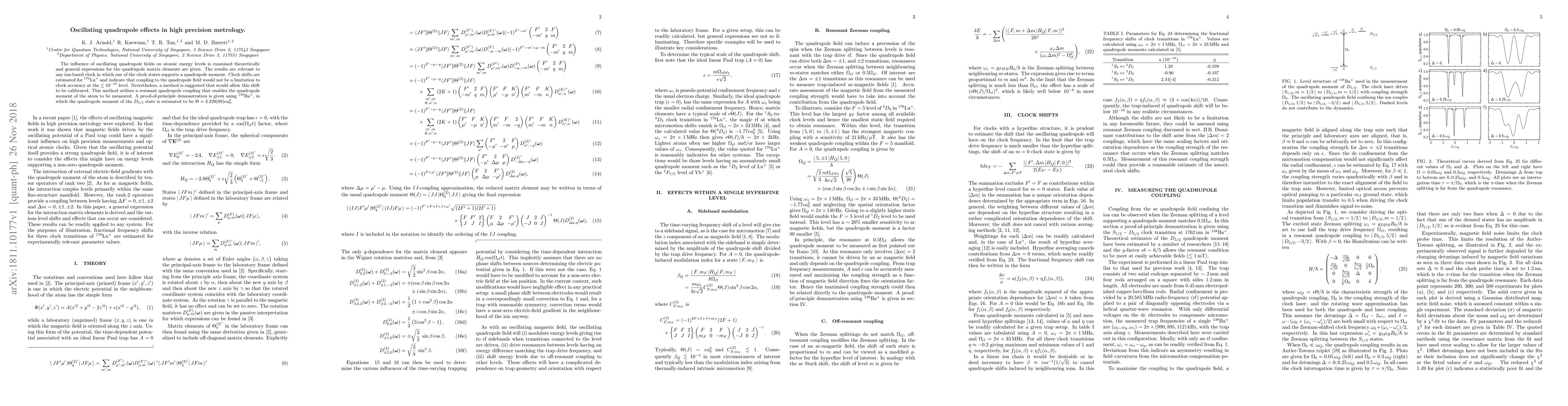 This paper investigates the impact of oscillating quadrupole fields on atomic energy levels, providing theoretical expressions for quadrupole matrix elements. It concludes that quadrupole coupling does not significantly affect ion-based clock accuracy, yet proposes a calibration method using resonant quadrupole coupling, demonstrated with $^{138}$Ba$^+$.