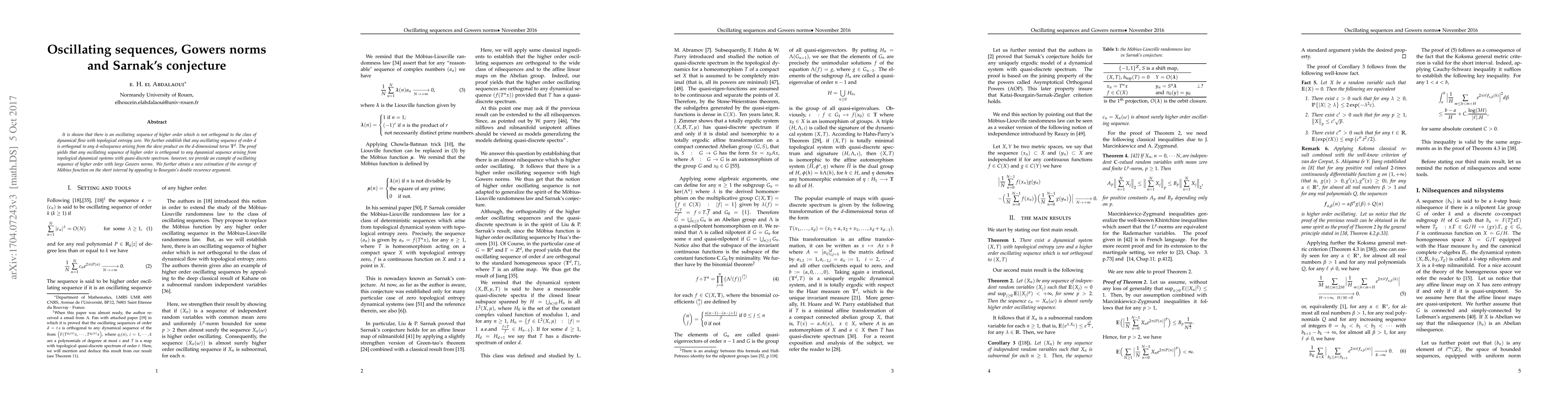 This paper demonstrates the orthogonality of higher-order oscillating sequences to certain dynamical sequences and $d$-nilsequences, while providing an example of such sequences with large Gowers norms. Additionally, it offers a new estimation for the average of the Möbius function on short intervals using Bourgain's double recurrence argument.