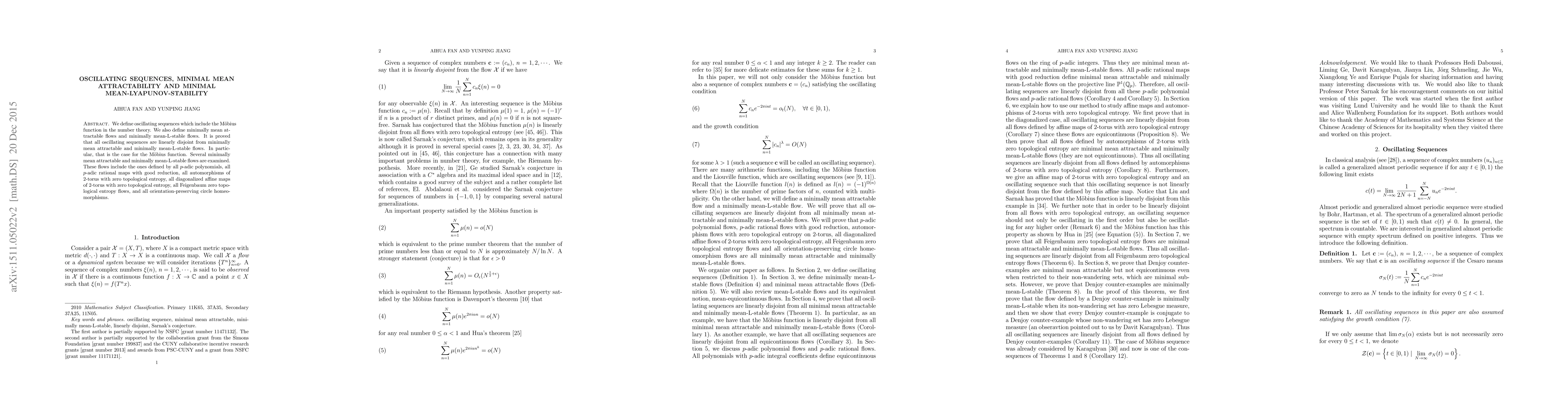 This paper introduces oscillating sequences, including the M\"obius function, and defines minimally mean attractable and minimally mean-Lyapunov-stable flows. It proves that all oscillating sequences are linearly disjoint from these flows, with specific examples such as $p$-adic polynomials and orientation-preserving circle homeomorphisms examined.