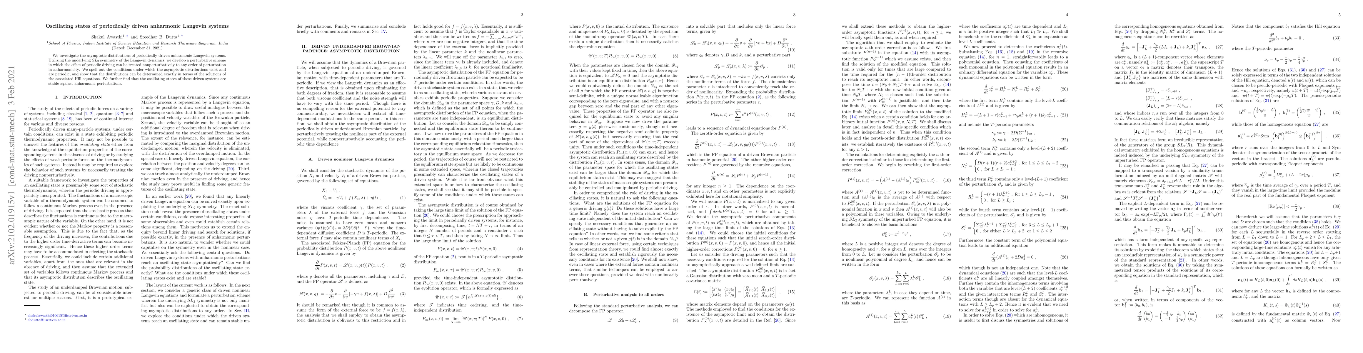 This paper explores the asymptotic behavior of periodically driven anharmonic Langevin systems, revealing that periodic driving can be treated nonperturbatively. The study identifies conditions for the existence of periodic asymptotic distributions, which can be precisely determined through solutions of Hill equations, and confirms the stability of these oscillating states against anharmonic perturbations.