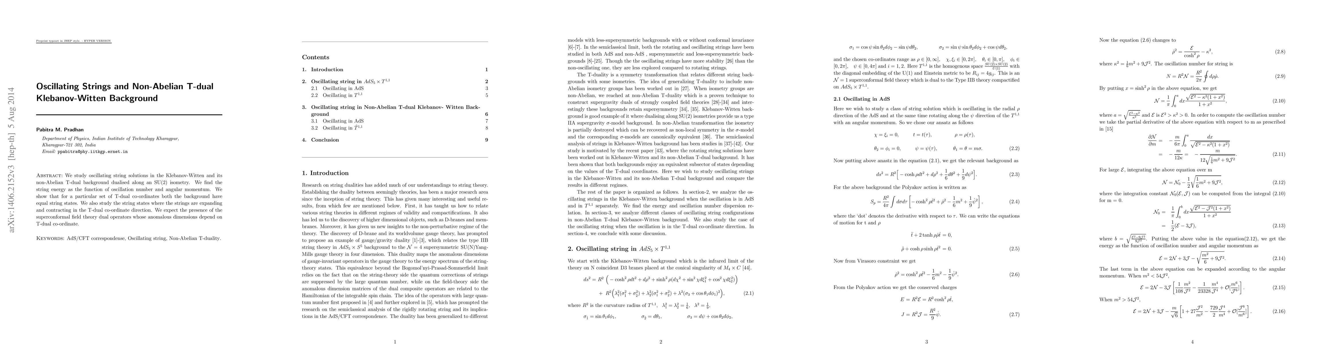 This paper investigates oscillating string solutions in the Klebanov-Witten background and its non-Abelian T-dual along an SU(2) isometry, deriving the string energy as a function of oscillation number and angular momentum. It finds that both backgrounds exhibit equal string states under certain T-dual coordinates, and explores expanding and contracting strings in these directions, linking to superconformal field theory dual operators.
