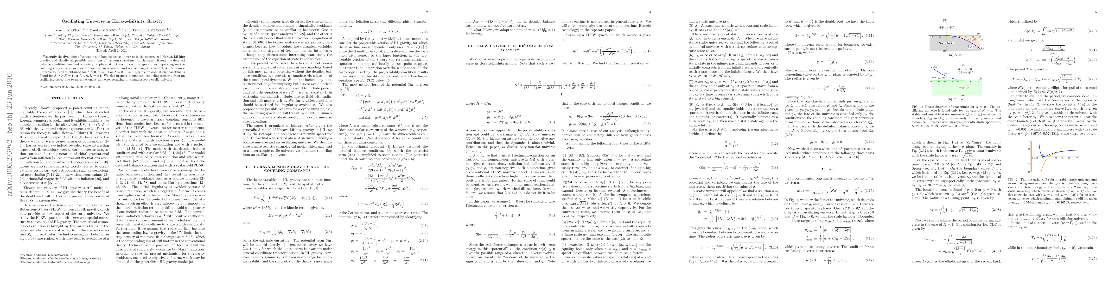This paper explores the dynamics of isotropic and homogeneous universes in Horava-Lifshitz gravity, identifying various phase structures and solutions. It finds oscillating universe solutions under specific conditions and proposes a quantum tunneling mechanism leading to a cyclic universe transitioning from oscillation to inflation.