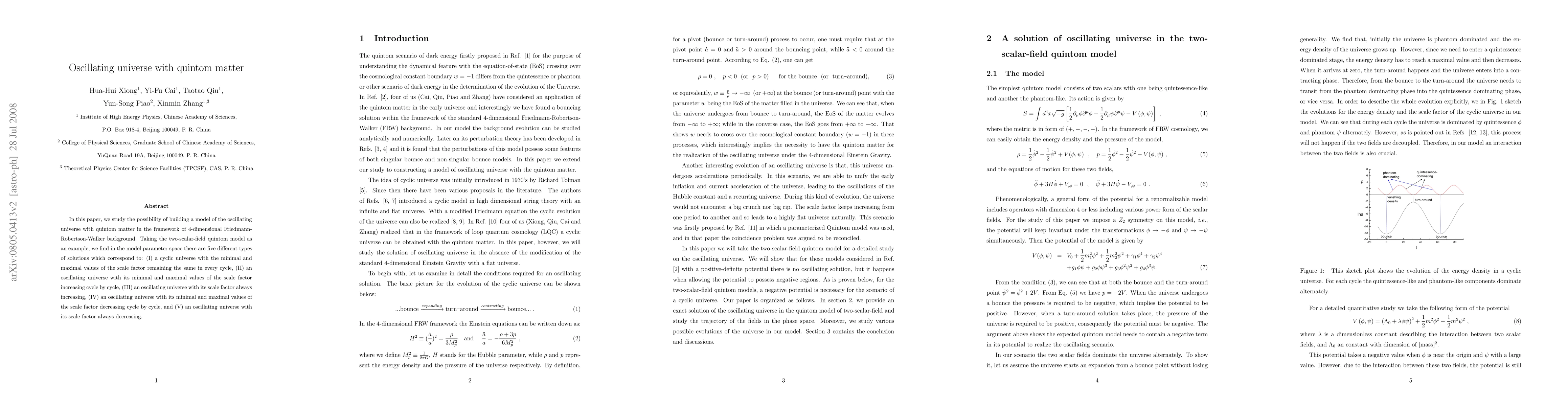 The study identifies five different types of solutions in the model parameter space, each corresponding to a distinct type of oscillating universe