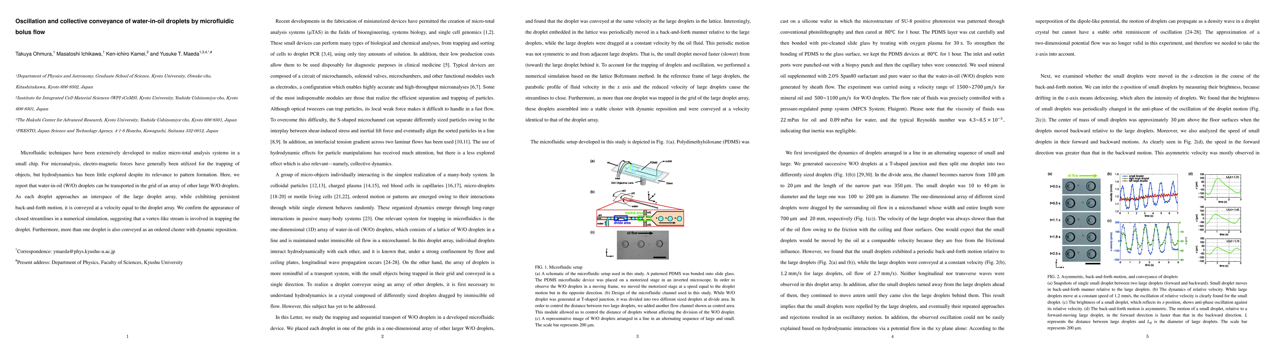Researchers demonstrate a microfluidic system that transports water-in-oil droplets using oscillation and collective conveyor effects, enabling the movement of multiple droplets in an ordered cluster.