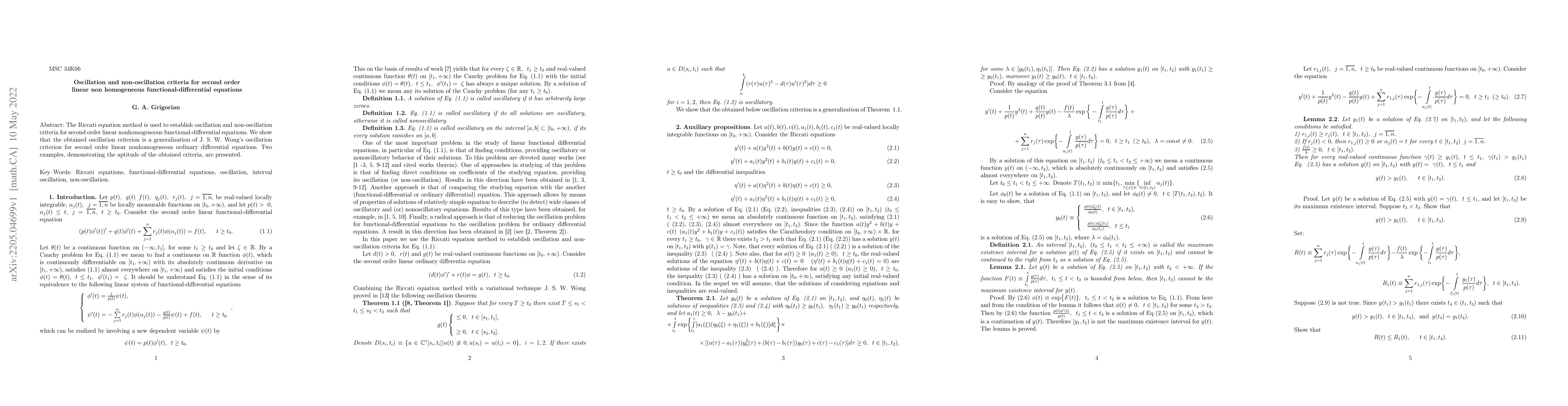 The Riccati equation method is used to establish oscillation and non-oscillation criteria for second order linear nonhomogeneous functional-differential equations.We show that the obtained oscillation criterion is a generalization of J. S. W. Wong's oscillation criterion for second order linear nonhomogeneous ordinary differential equations. Two examples, demonstrating the aptitude of the obtained criteria, are presented.